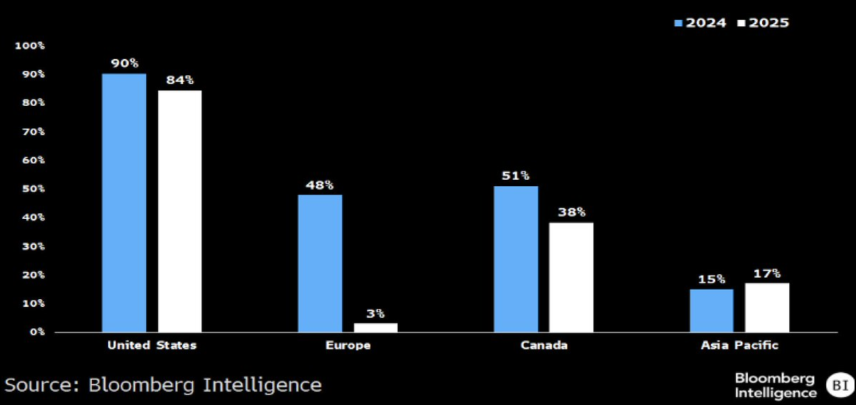 Last year, Europeans put HALF of their cash into US focused ETFs, this year ONLY 3%