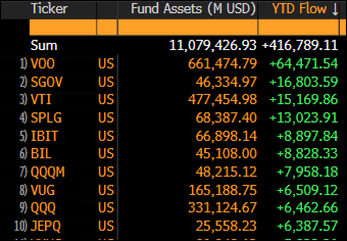 - IBIT has worked its way into the Top 5 in YTD flows with +$9B, just passing BIL~ this is wild because one month ago it was ranked 47th