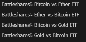 BattleShares filed 4 ETFs pitting Bitcoin against Ether and Gold long/shorting one against the other…