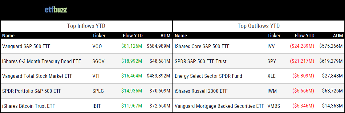 - All of the Top 10 are Equity ETFs with the exception of IBIT