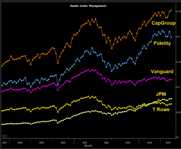 - In the past 5 years, they’ve passed PIMCO, Franklin, DFA and T Rowe in active AUM to claim 4th spot (behind Capital, Fidelity and Vanguard)