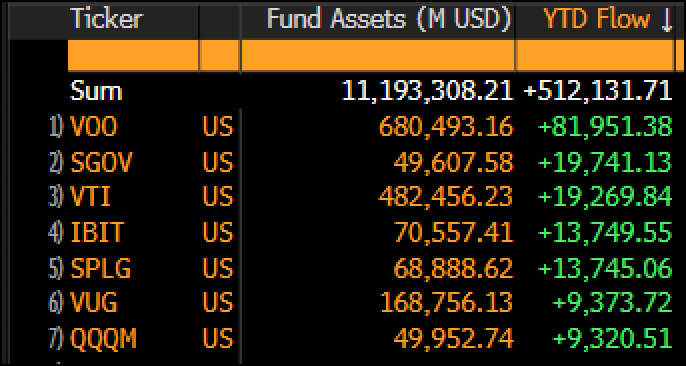 IBIT has taken over 4th place on the YTD flow leaderboard…passing SPLG (an ETF that tracks the SP500)