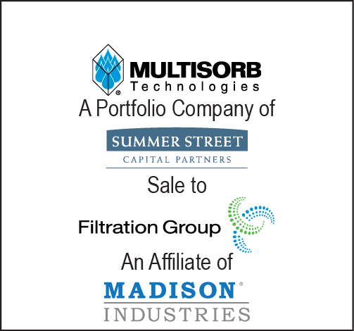 Baird served as the exclusive financial advisor to Multisorb Technologies, Inc., a leading global provider of sorbent solutions that extend product shelf or service life and protect product quality and functionality in healthcare, food and industrial markets, on its sale to Summer Street Capital Partners LLC, a private equity fund focused on investing in middle-market companies.