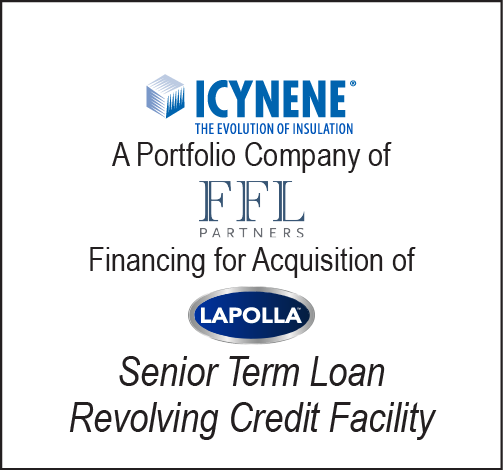 Baird served as exclusive debt advisor to Icynene, Inc. and FFL Partners. Icynene, Inc., a portfolio company of FFL Partners, recently completed a debt financing in support of its acquisition of Lapolla Industries, Inc. The Financing consisted of a senior secured revolving credit facility and a senior term loan.