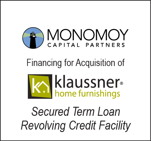 Baird served as exclusive debt advisor to Monomoy Capital Partners. Monomoy Capital Partners recently completed a secured debt financing in support of its acquisition of Klaussner Furniture Industries, Inc. The Financing consisted of a senior secured revolving credit facility and a secured term loan.