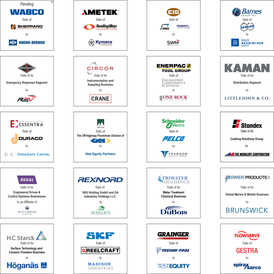 The above transactions were selected for their relevance to our Industrial experience and do not represent all Baird transactions. View our website at www.rwbaird.com/investment-banking for a full list of transactions.