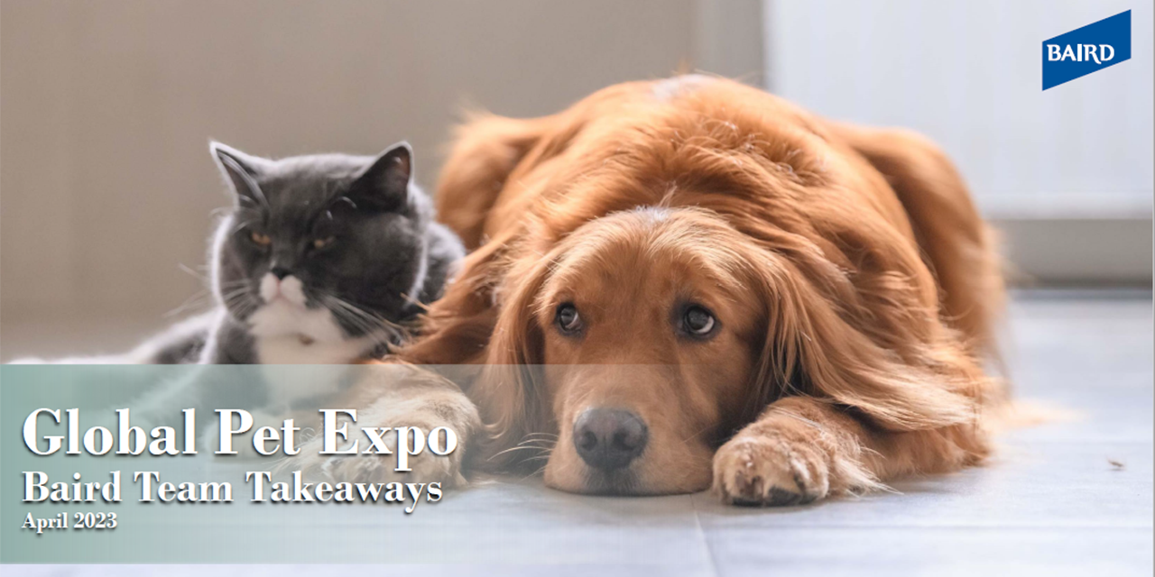 Baird's Pet Care team recently attended the Global Pet Expo in Orlando. Throughout the multi-day conference, Baird connected with dozens of companies that play across the pet category and attended several educational sessions spanning a wide range of topics. The team is energized about the continued growth in the pet care industry and looks forward to helping clients navigate an ever evolving landscape.