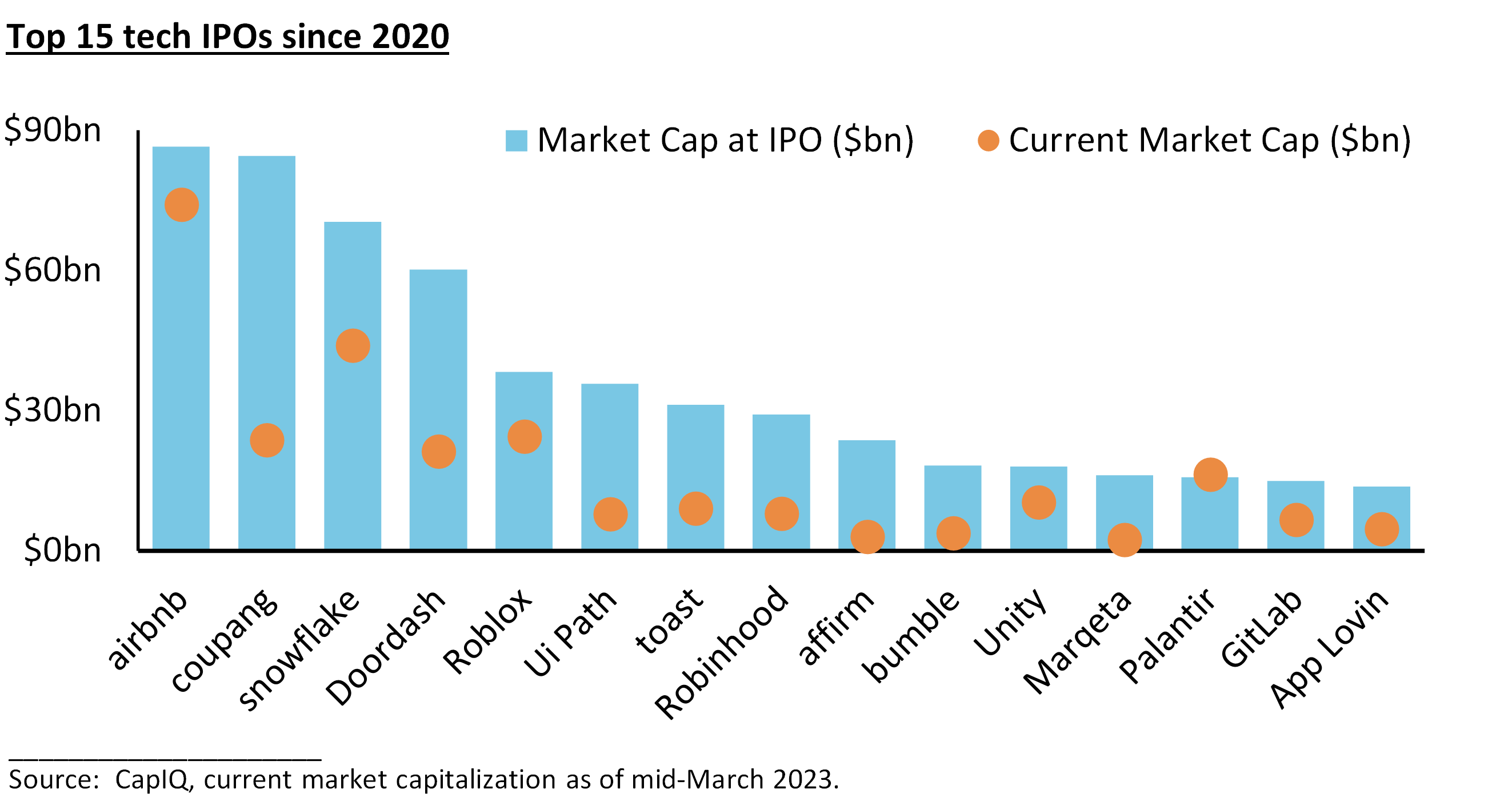 Publicly listed tech was the hardest hit sector, dropping to valuation levels below the private tech market