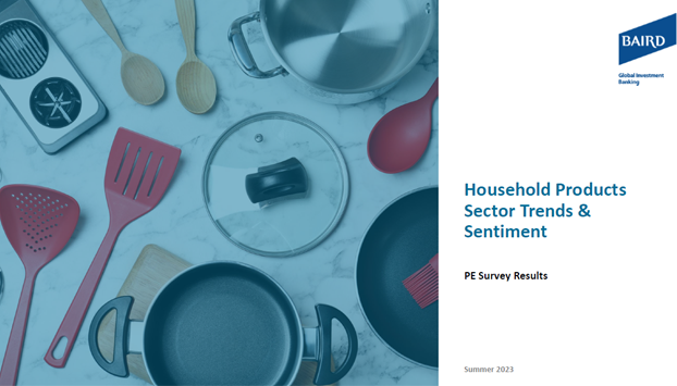 Baird's Household Products team recently surveyed a segment of our private equity clients and lender community on sector trends and sentiments related to the category. The survey revealed some compelling insights and trends, including: