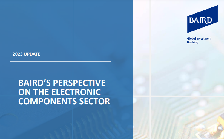 Baird is pleased to present our Electronic Components update, which highlights sector trends and industry dynamics, key macro-economic indicators, relevant valuation and operating statistics and key M&A activity.