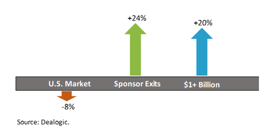 - In the first quarter of the year, the estimated transaction count for U.S. sponsor M&A exits was 24% above the quarterly mean for 2023.