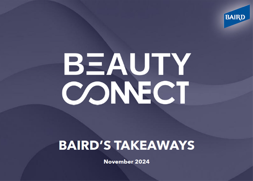 We recently attended the Beauty Connect conference in Los Angeles, which was well attended by brand founders, investors and service providers. This year, despite a more subdued backdrop (slower beauty category growth, less investment activity on the part of both strategics and financial investors), the tone of the conference was very much one of looking ahead to a brighter and more beautiful 2025. We heard a lot about what consumers value today (transparency and quality), how the retail landscape is evolving (more online and DTC as brands broaden their presence) and how important having the right partners is when it comes to the supply chain.