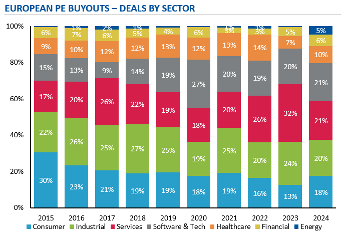 - 6) PE sector mix settling into a “new normal” – software & technology to continue as the most active sector