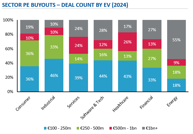PE firms are doing “deep-dives”, choosing which subsectors to focus on and proactively chasing a few targets that fit their quality and size criteria. This has implications for M&A process dynamics and timelines, where some processes are very broad while others are highly targeted comprising a small group of pre-qualified potential buyers. Either way, PE appetite within sectors is changing rapidly and our subsector analysis of European buyouts shows a few trends: