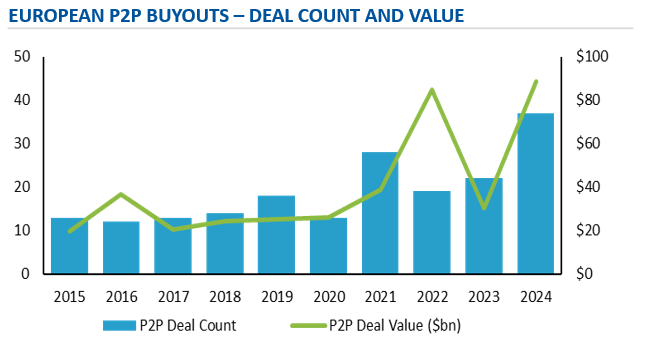 - 2) Record P2P activity in 2024 – transatlantic large-cap sponsors proactively targeting €1bn+ listed companies