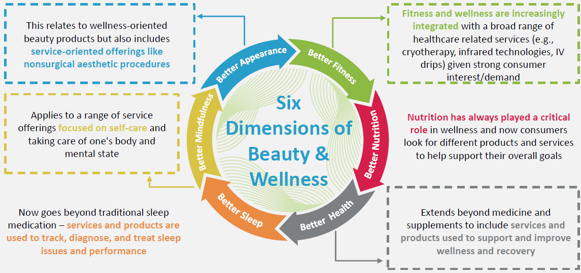 Within Baird’s Global Consumer Practice, our Beauty & Wellness team covers traditional beauty categories, including skincare, haircare, fragrance, color cosmetics and beauty services, as well as the entire spectrum of wellness pursuits. Baird’s Beauty & Wellness group focuses on the “Six Dimensions of Beauty & Wellness” below and have established longstanding relationships and deep industry knowledge in each area of focus.
