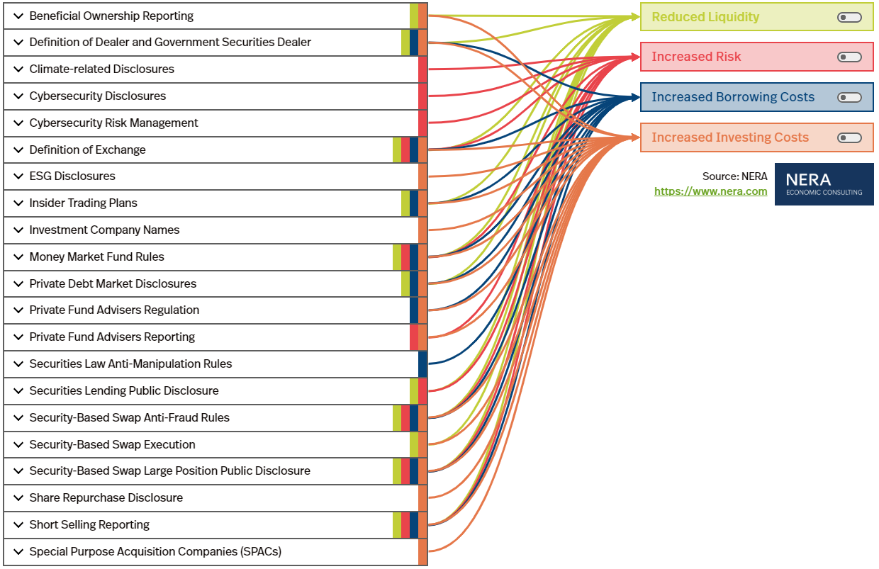 The potential impacts of major SEC regulatory actions on market liquidity, risk, borrowing costs and investing costs. Source: NERA Economic Consulting, SIFMA.