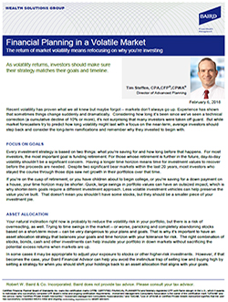 Tim Steffen, Director of Advanced Planning, discusses the implications of current volatility for your financial plans, and the often counter-intuitive psychology of long-term goal-based investing. |