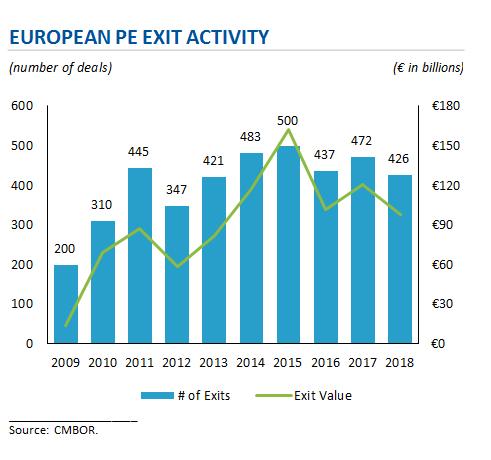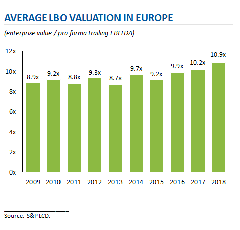 These factors have helped to prolong the current M&A cycle that has been strong for over five years. In the middle-market, European M&A supply has been supported by PE firms bringing their portfolio companies to market. On the demand side, we have seen a recent “flight to quality” as PE firms increasingly focus on targets with downside protection and upside potential. Valuations for leveraged buyouts (LBOs) across Europe were at record levels in 2017 and 2018.