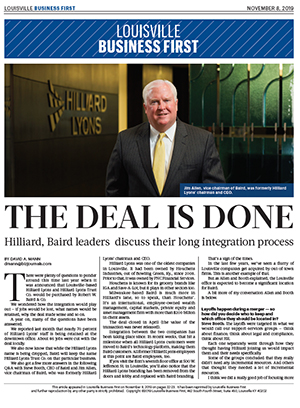 Jim Allen, Vice Chairman, and Steve Booth, President and CEO, discuss what Baird’s acquisition of Hilliard Lyons means for associates, the firm and Louisville moving forward in a Q&A with Louisville Business First.