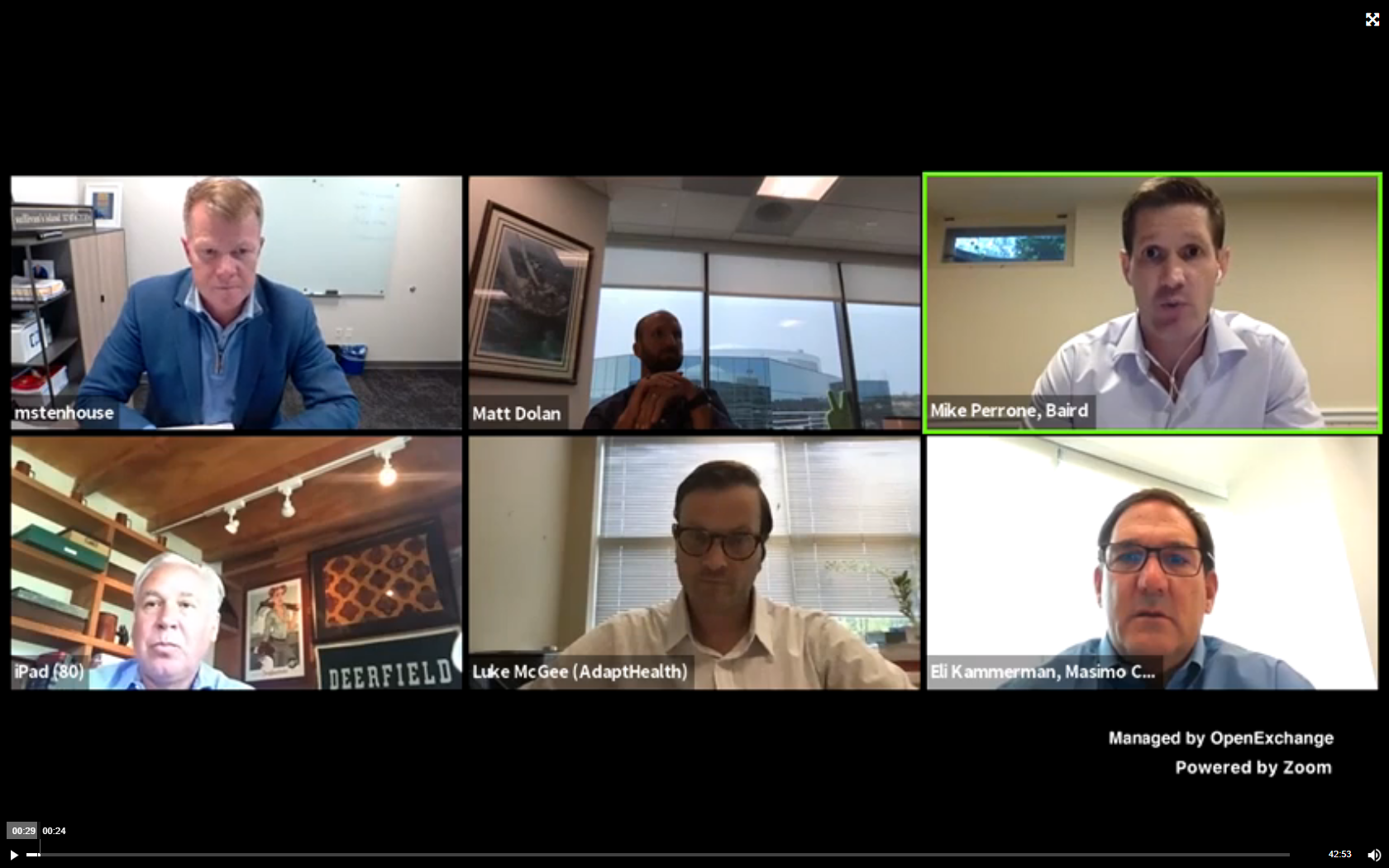 At its firm's recent Global Healthcare Conference, Baird hosted a panel of healthcare company leaders to discuss the growing trend of delivering healthcare at home. The discussion featured Matt Dolan, SVP and General Manager of New Markets, Dexcom; Eli Kammerman, VP of Investor Relations, Masimo; Paul Kusserow, President and CEO, Amedisys; Luke McGee, CEO, AdaptHealth; and Mark Stenhouse, General Manager, Screening, Exact Sciences. The panel was moderated by Mike Perrone, Director on Baird's Institutional Sales team.