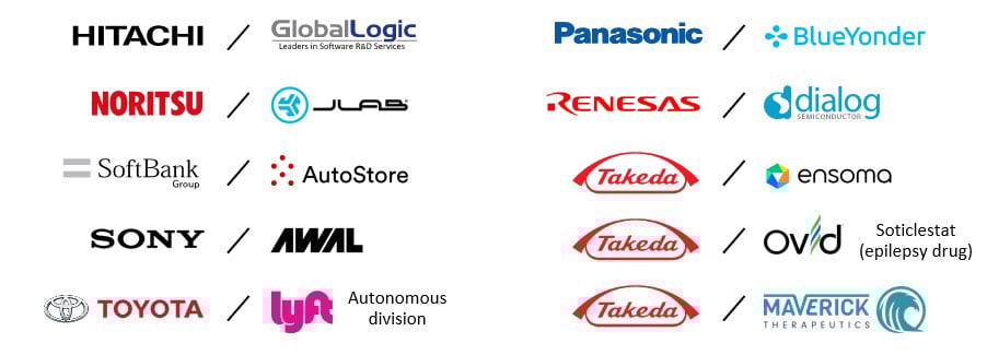 Note: Logos shown for select deals above $250m for Japan and above $100m for China.