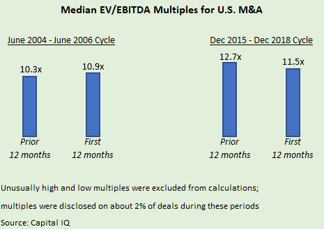- In the 2004 case, the median U.S. multiple was up about half a turn from the median of the previous 12 months.