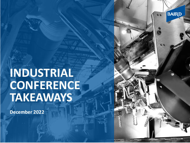 Baird's 52nd annual Global Industrial Conference brought to light various dynamics underlying the sector as we go into 2023. We hosted 305 presenting companies and over 2,700 attendees across an in-person conference in Chicago and virtual private company track.
