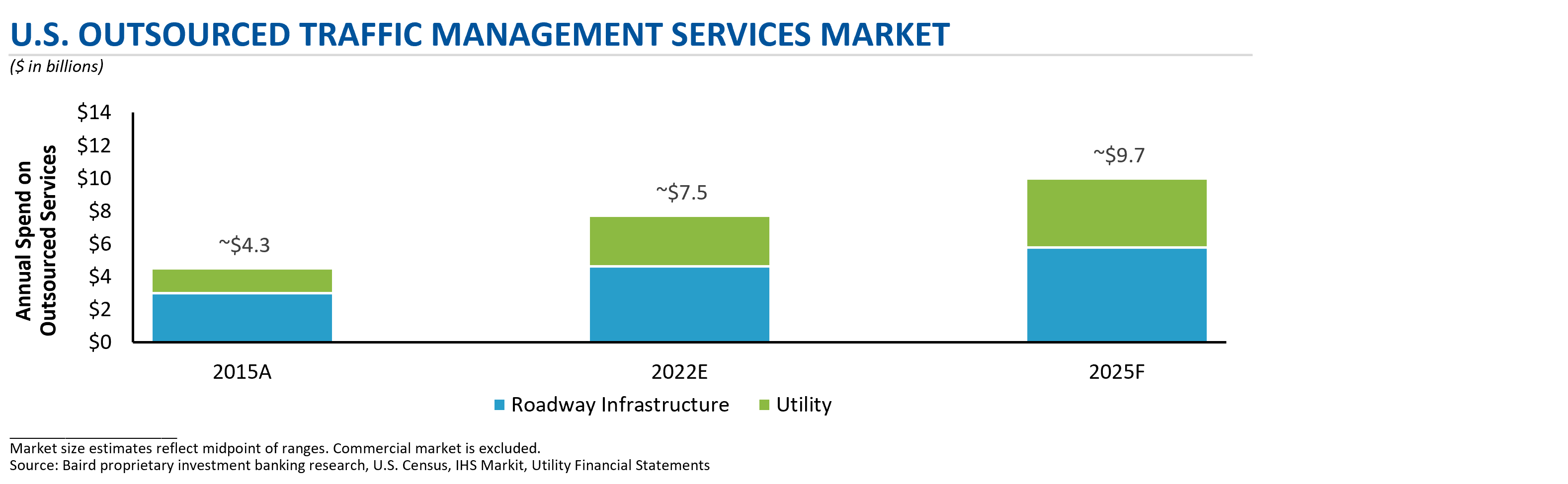 The outlook for the traffic management market is incredibly positive, as strong market tailwinds (i.e., infrastructure spend, end market activity, outsourcing, etc.) persist. Many industry players have recovered from the short-term lull they experienced during COVID shutdowns and are experiencing significant year-over-year growth. Well-positioned local, regional and national players are taking share from their competitors by gaining more wallet share from clients and winning new clients. These well-positioned businesses are characterized as those that prioritize and have a culture around safety, training and service, have the necessary people and equipment to deploy to jobs, and have strong relationships and brands in the markets they compete. The Department of Transportation (DoT), as well as utilities and infrastructure clients (e.g., airports, etc.) have demonstrated strong demand for traffic management services (i.e., traffic control, flagging, pavement marking, signs, etc.) due to the increasing amount of work they must complete. Many market participants are seeing growing backlogs and an increasing number of new project bids; in some cases, demand is outpacing supply and projects are being pushed out to future dates.